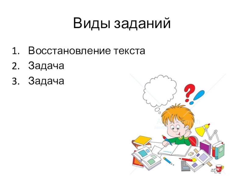 Слайд 12Виды заданий