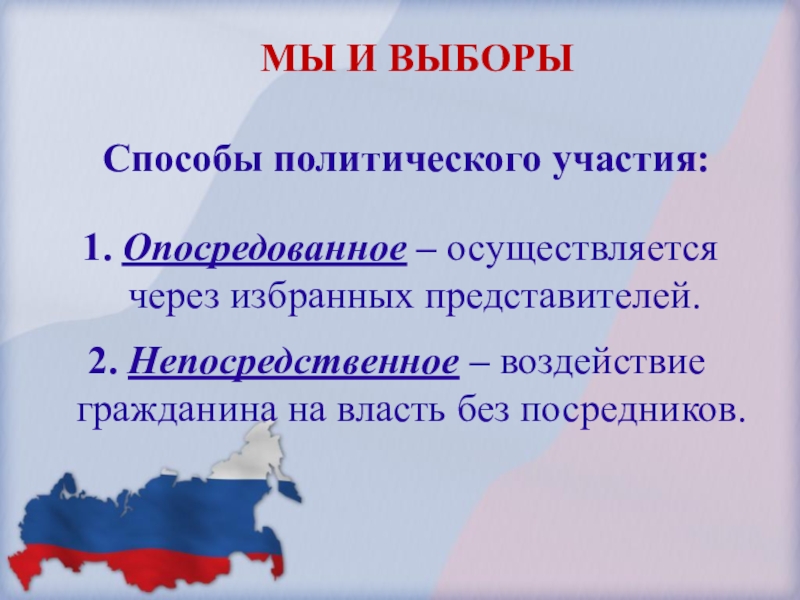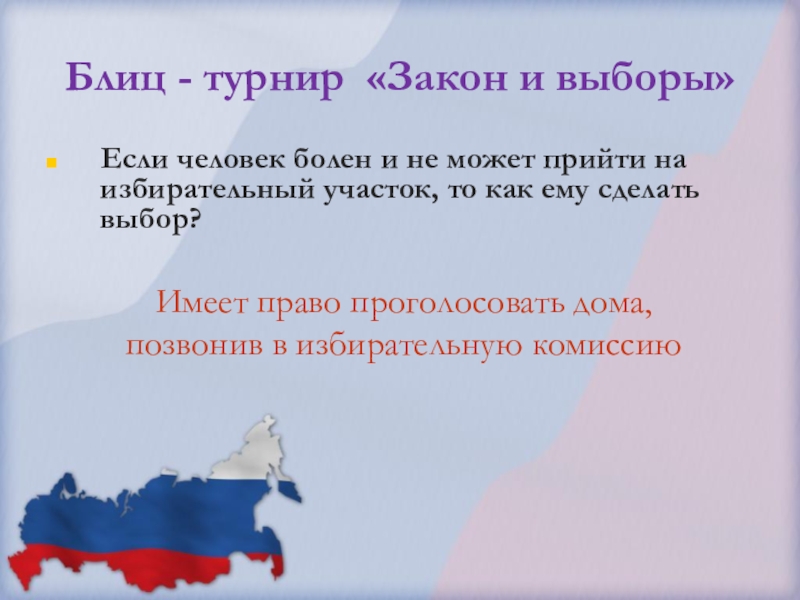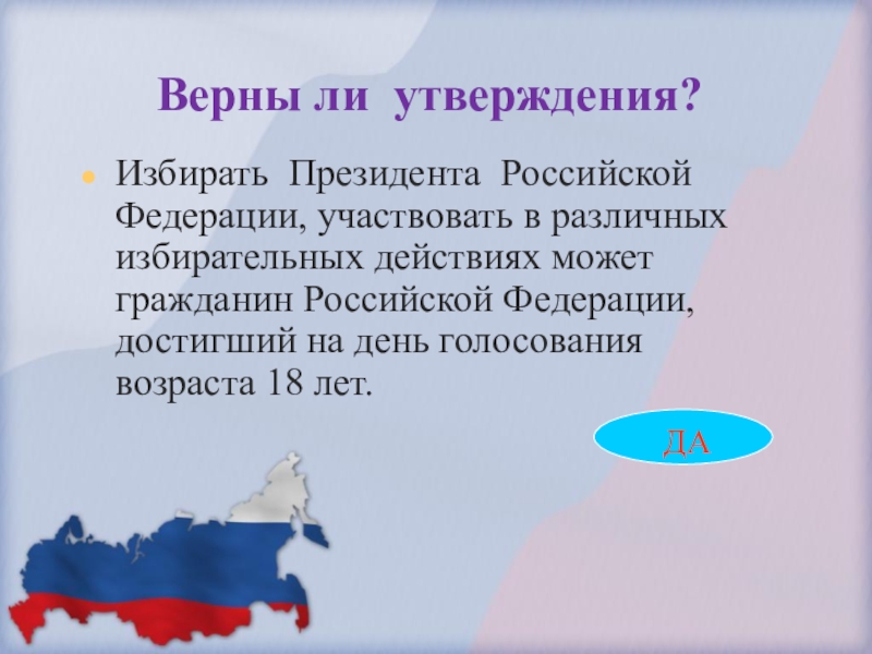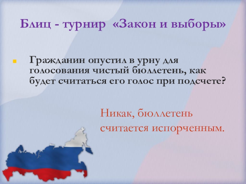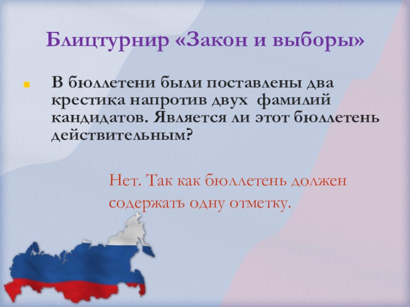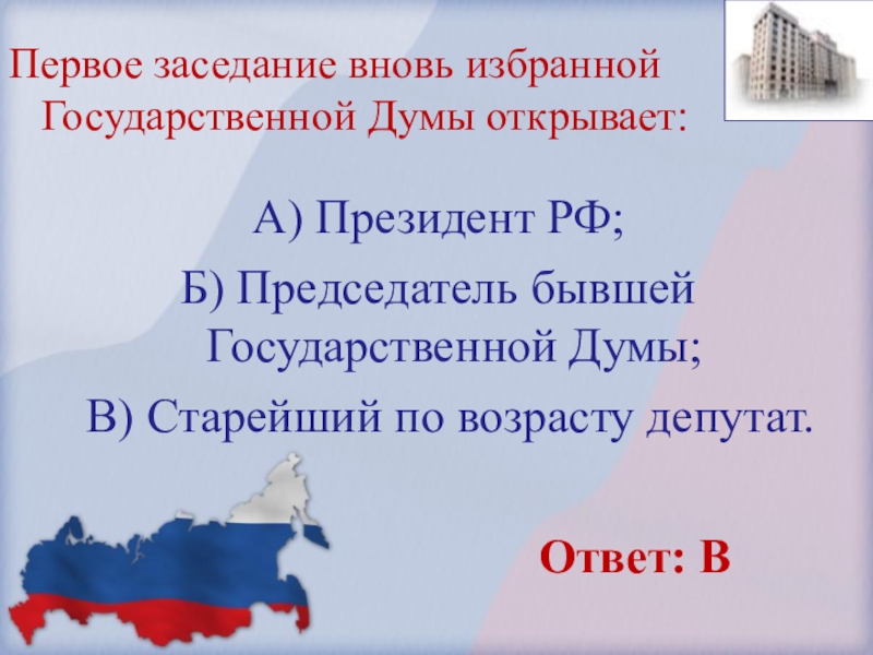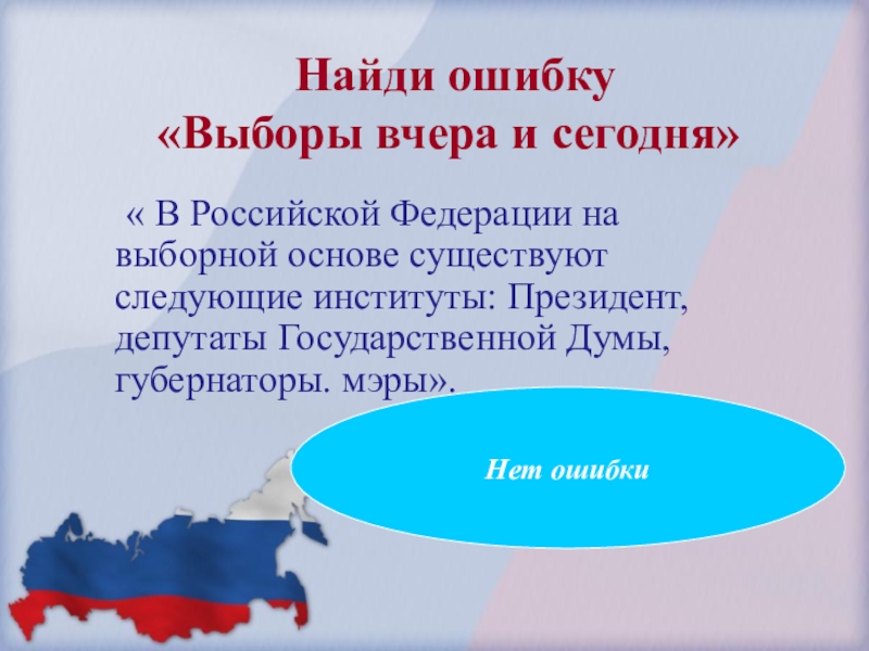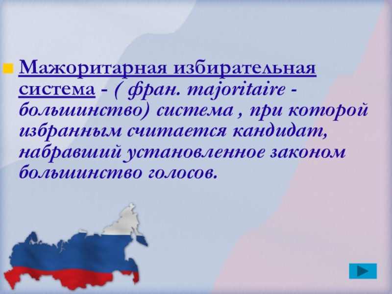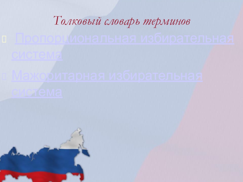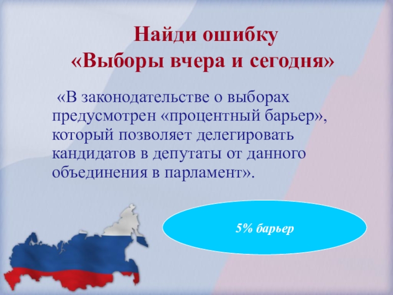 «Для проведения выборов в Государственную Думу образуют избирательные округа. В соответствии с Конституцией РФ в Государственной Думе 450 депутатов. Половина из них избирается в одномандатных округах по мажоритарной системе. Остальные по пропорциональной системе».