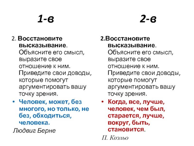2.Восстановите высказывание. Объясните его смысл, выразите свое отношение к ним. Приведите свои доводы, которые помогут аргументировать вашу точку зрения.