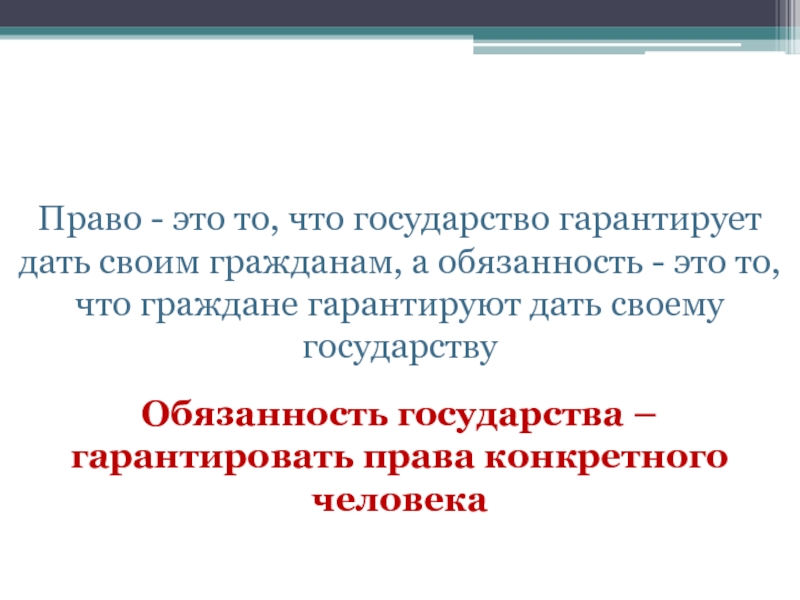 Право - это то, что государство гарантирует дать своим гражданам, а обязанность - это то, что граждане