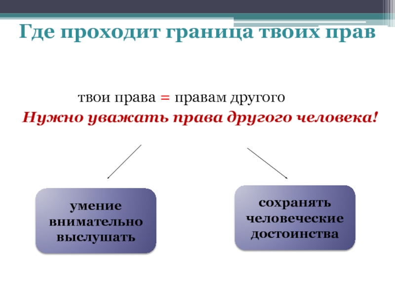 Слайд 11Наши права заканчиваются там, где начинаются права другого человека!