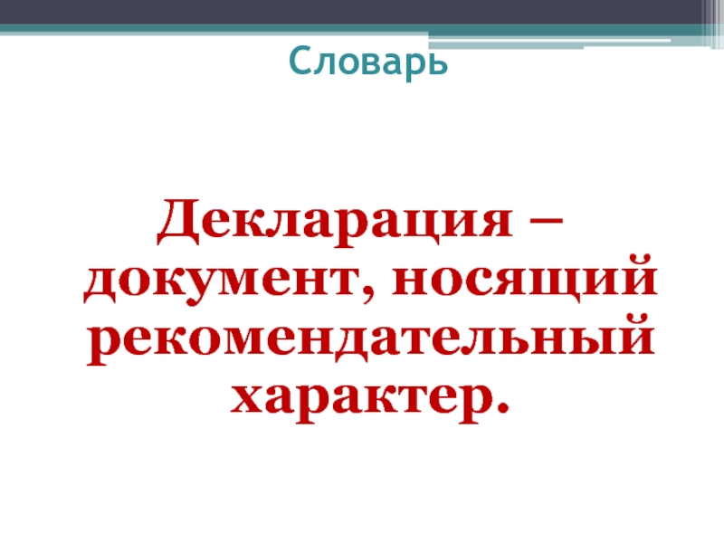 СловарьДекларация – документ, носящий рекомендательный характер.