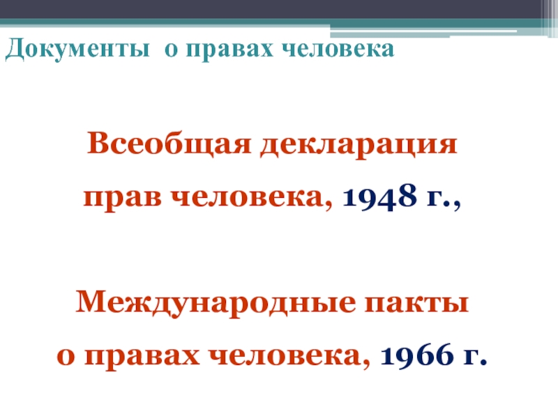 Документы о правах человекаВсеобщая декларация прав человека, 1948 г.,Международные пакты о правах человека, 1966 г.