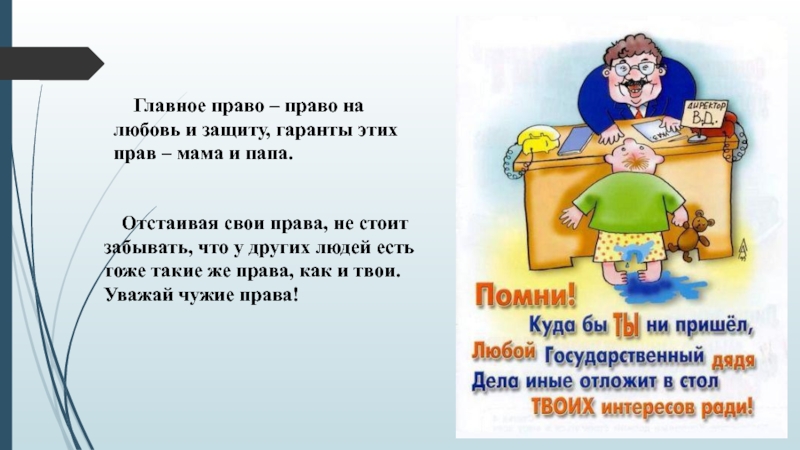 Главное право – право на любовь и защиту, гаранты этих прав – мама и папа.
