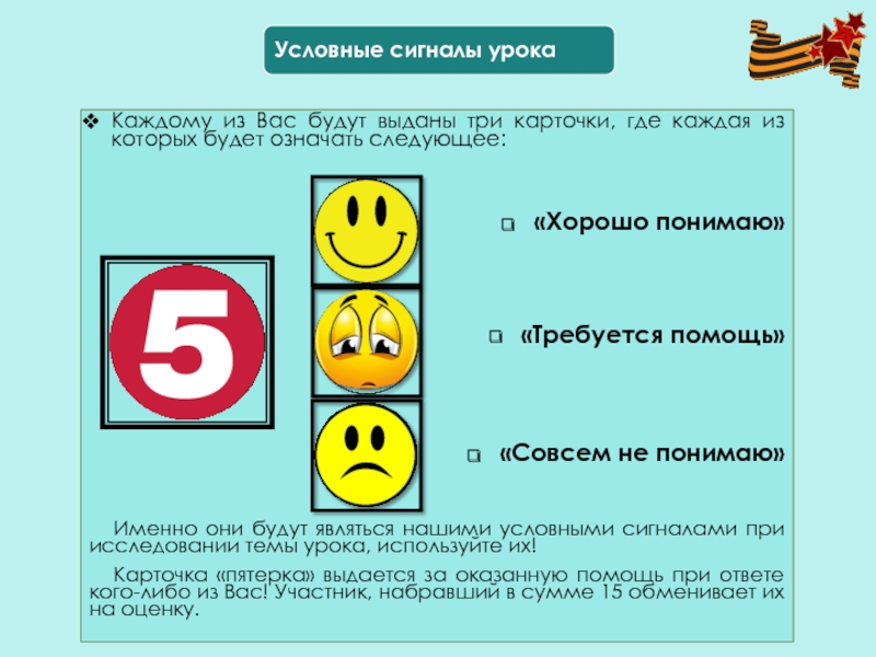 Именно они будут являться нашими условными сигналами при исследовании темы урока, используйте их!