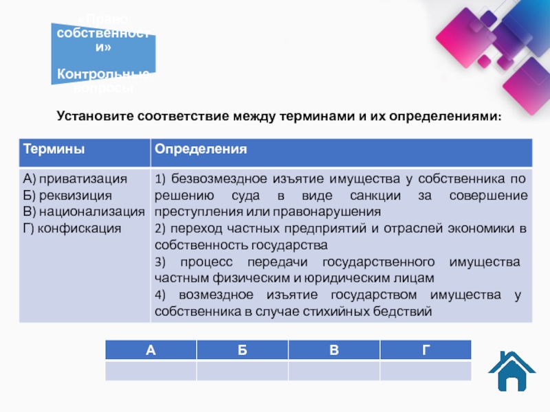 Слайд 18 Установите соответствие между терминами и их определениями: