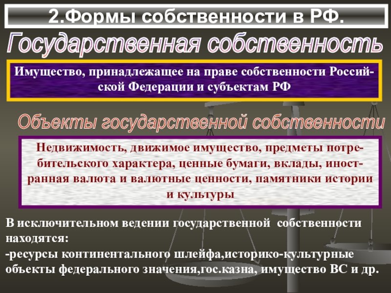 объекты федерального значения,гос.казна, имущество ВС и др.