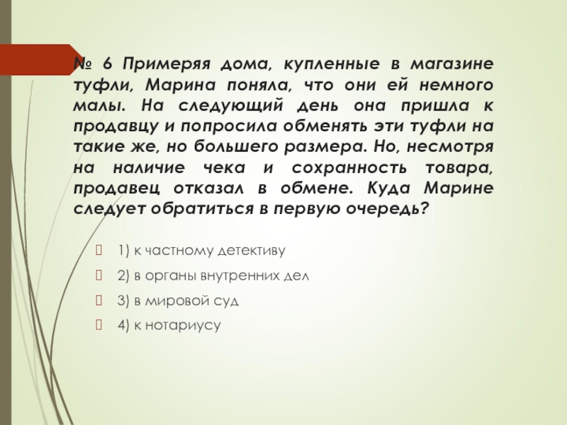 Слайд 51№ 6 Примеряя дома, купленные в магазине туфли, Марина поняла, что