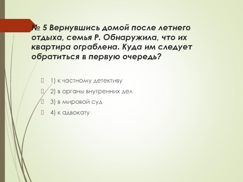 Слайд 50№ 5 Вернувшись домой после летнего отдыха, семья Р. Обнаружила, что