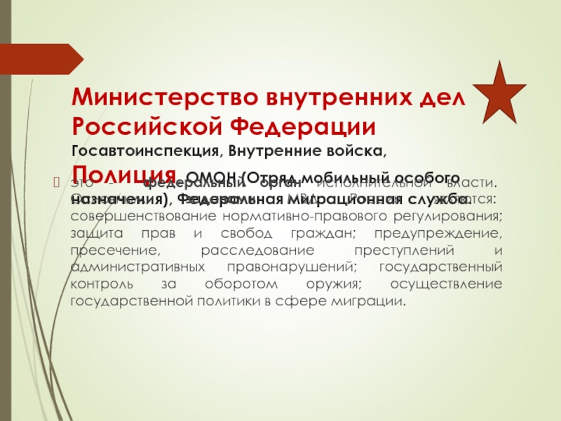 войска, Полиция, ОМОН (Отряд мобильный особого назначения), Федеральная миграционная служба.