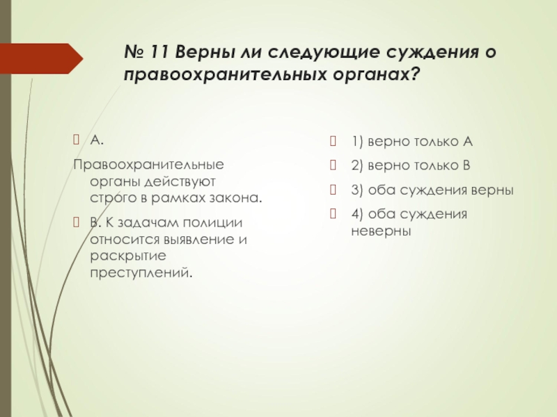 Слайд 56№ 11 Верны ли следующие суждения о правоохранительных органах?