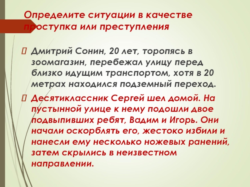Слайд 9Определите ситуации в качестве проступка или преступления