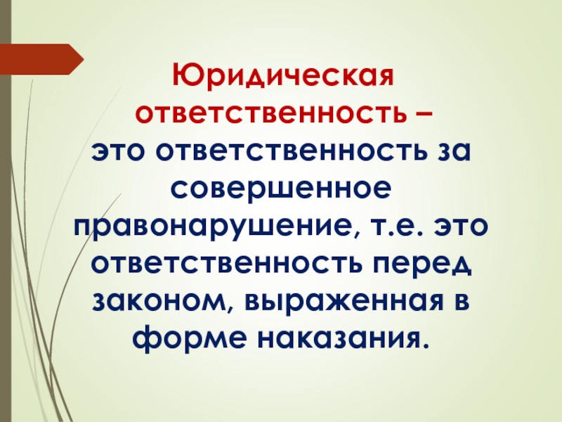 Слайд 10это ответственность за совершенное правонарушение, т.е. это ответственность перед законом, выраженная