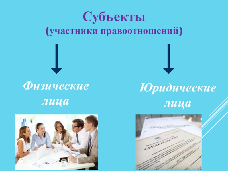 Субъекты (участники правоотношений)Физические лицаЮридические лица