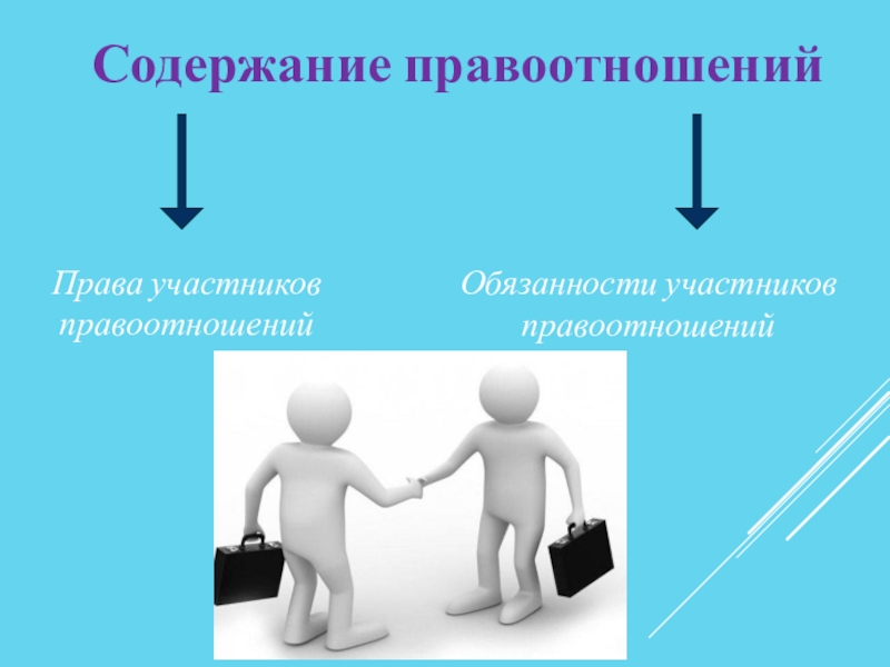 Содержание правоотношений Права участников правоотношенийОбязанности участников правоотношений