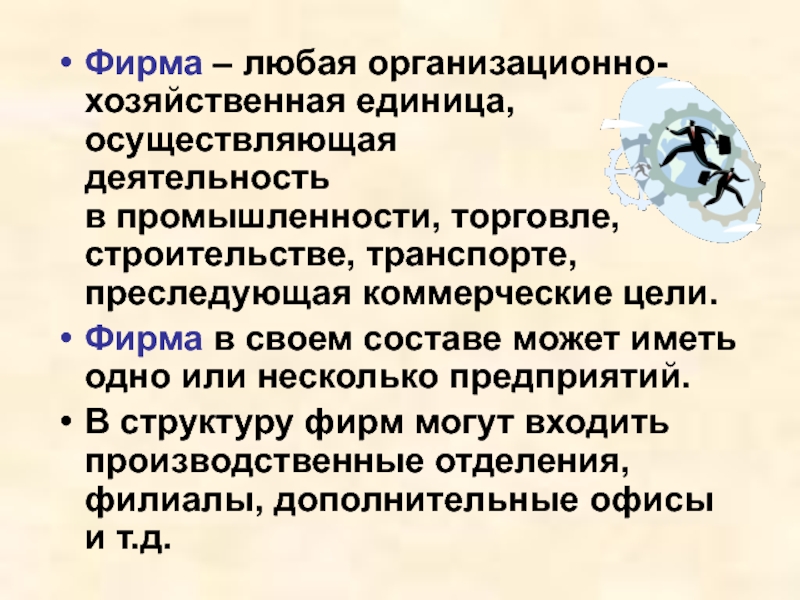 Фирма – любая организационно-хозяйственная единица, осуществляющая