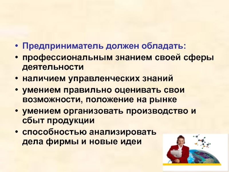 Предприниматель должен обладать: