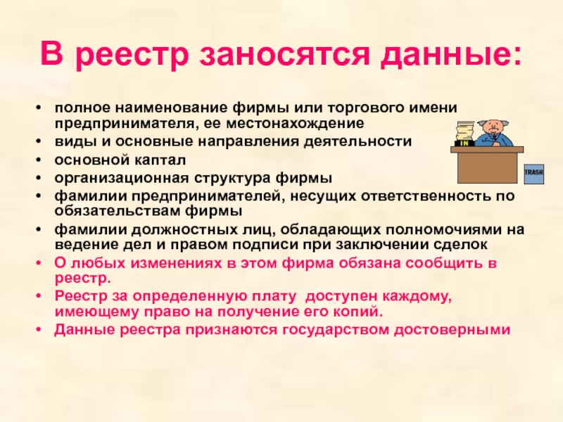 Слайд 19В реестр заносятся данные: