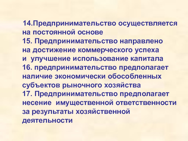 Слайд 9 14.Предпринимательство осуществляется на постоянной основе