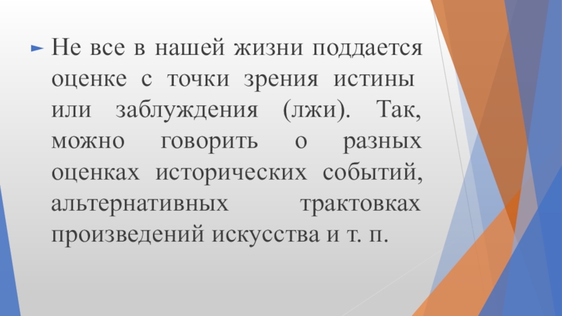 Слайд 7Не все в нашей жизни поддается оценке с точки зрения истины