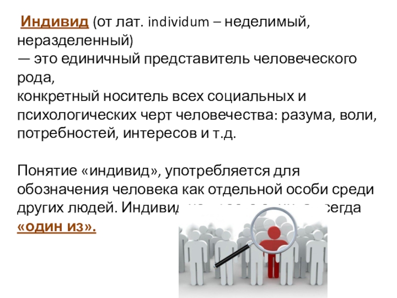 Слайд 4 Индивид (от лат. individum – неделимый, неразделенный)