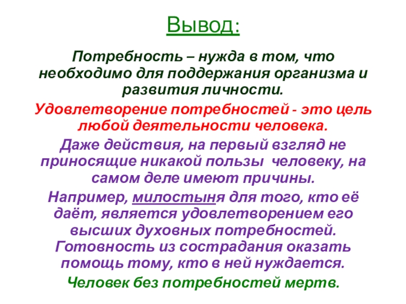 Удовлетворение потребностей - это цель любой деятельности человека.