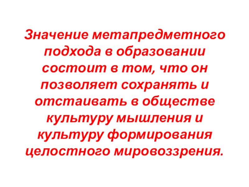 Слайд 40Значение метапредметного подхода в образовании состоит в том, что он позволяет