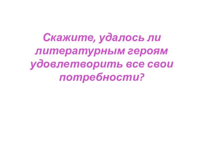 Слайд 29Скажите, удалось ли литературным героям удовлетворить все свои потребности?