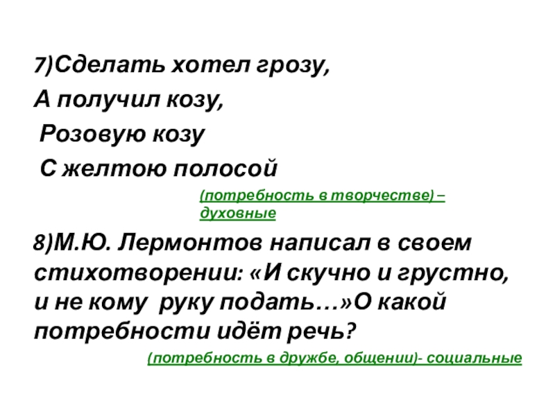 8)М.Ю. Лермонтов написал в своем стихотворении: «И скучно и грустно, и не кому руку подать…»О какой потребности идёт речь?
