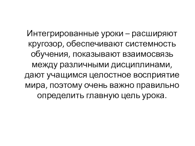 Слайд 12Интегрированные уроки – расширяют кругозор, обеспечивают системность обучения, показывают взаимосвязь между