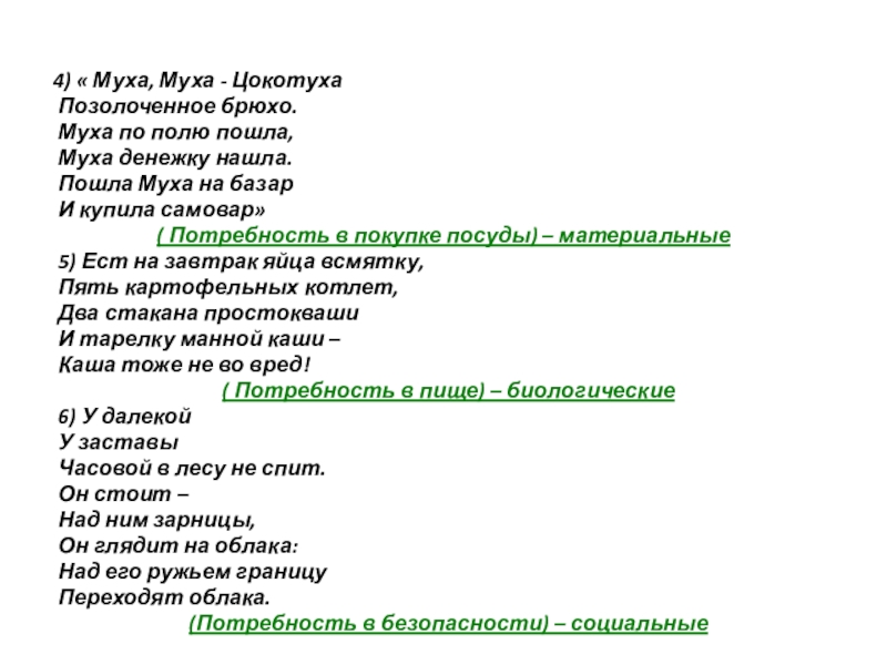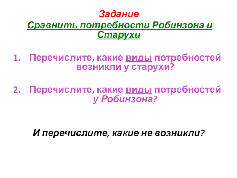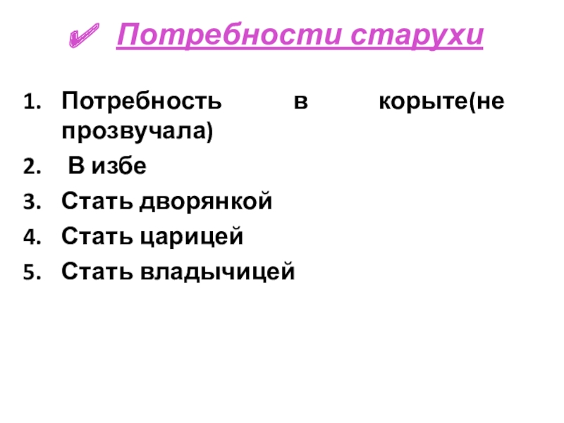рыбке» или «Золотая рыбка» и выписать виды потребностей старухи.