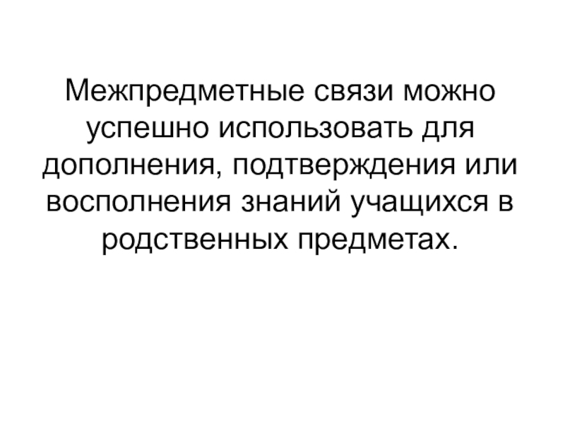 Слайд 5Межпредметные связи можно успешно использовать для дополнения, подтверждения или восполнения знаний