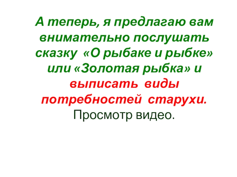 Слайд 23А теперь, я предлагаю вам внимательно послушать сказку «О рыбаке и