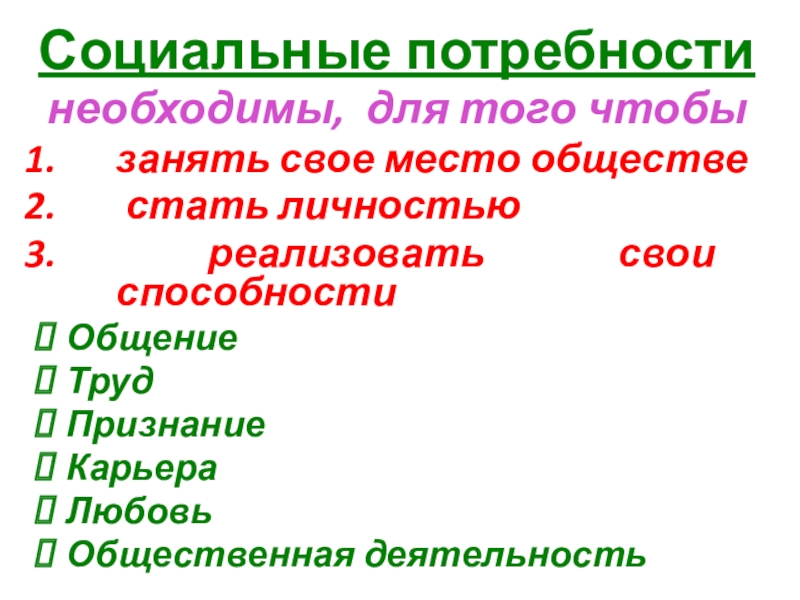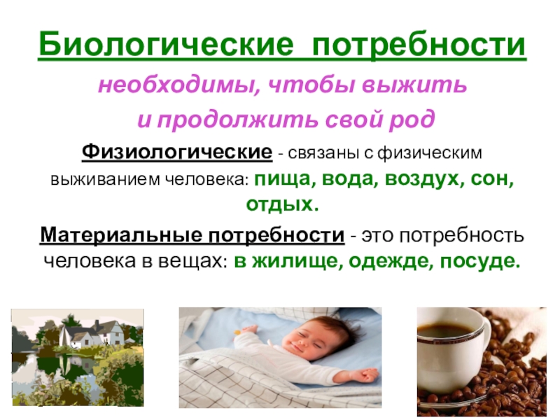 в том, что необходимо для поддержания организма (биологические) и развития личности (социальные и духовные).