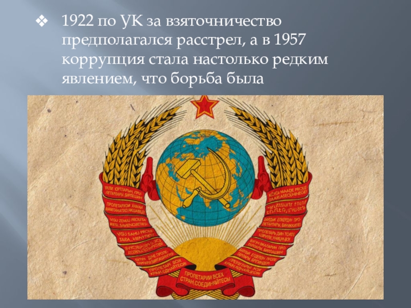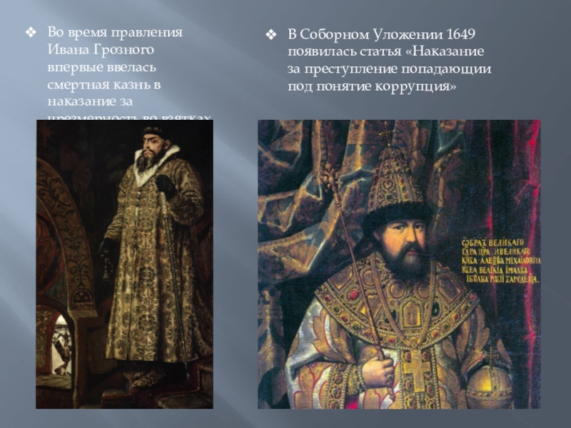 В Соборном Уложении 1649 появилась статья «Наказание за преступление попадающии под понятие коррупция»