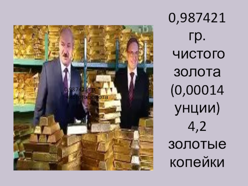 Слайд 60,987421 гр. чистого золота (0,00014унции) 4,2 золотые копейки