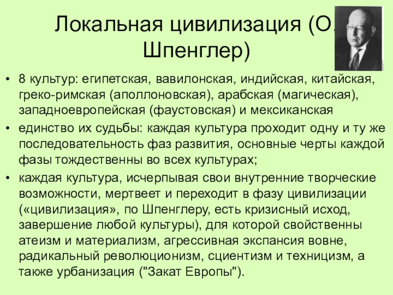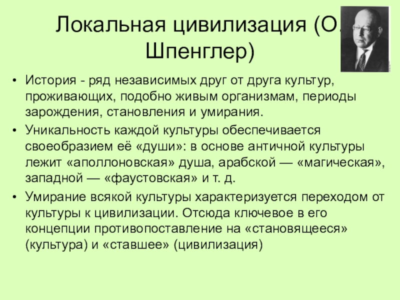 Слайд 10Локальная цивилизация (О.Шпенглер)