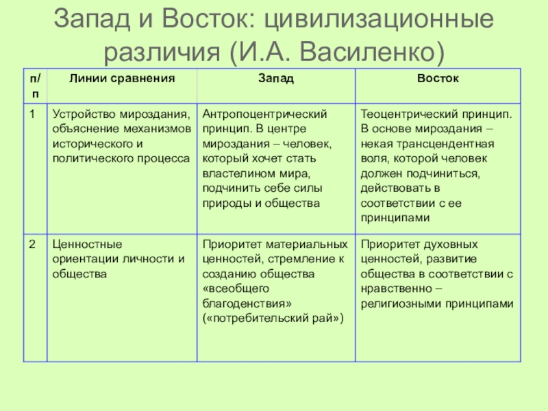 Слайд 18Запад и Восток: цивилизационные различия (И.А. Василенко)