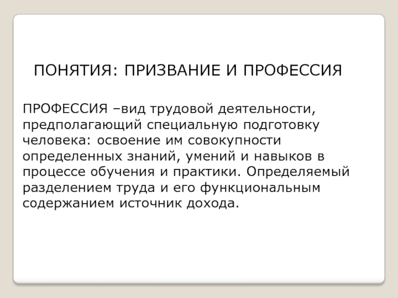 ПОНЯТИЯ: ПРИЗВАНИЕ И ПРОФЕССИЯ