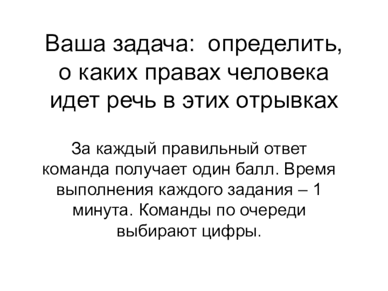 За каждый правильный ответ команда получает один балл. Время выполнения каждого задания – 1 минута. Команды по очереди выбирают цифры.