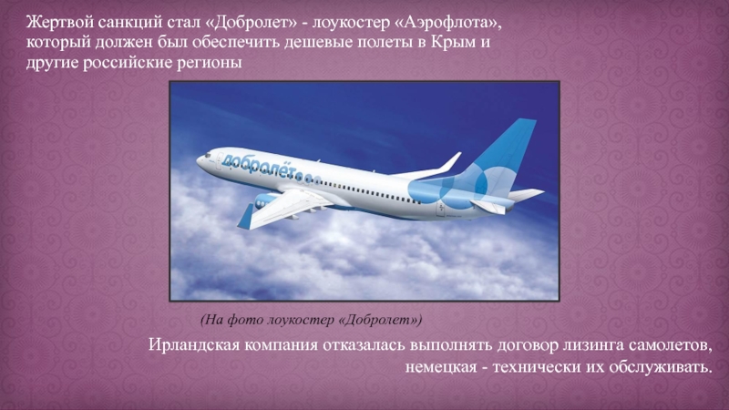 Ирландская компания отказалась выполнять договор лизинга самолетов, немецкая - технически их обслуживать.