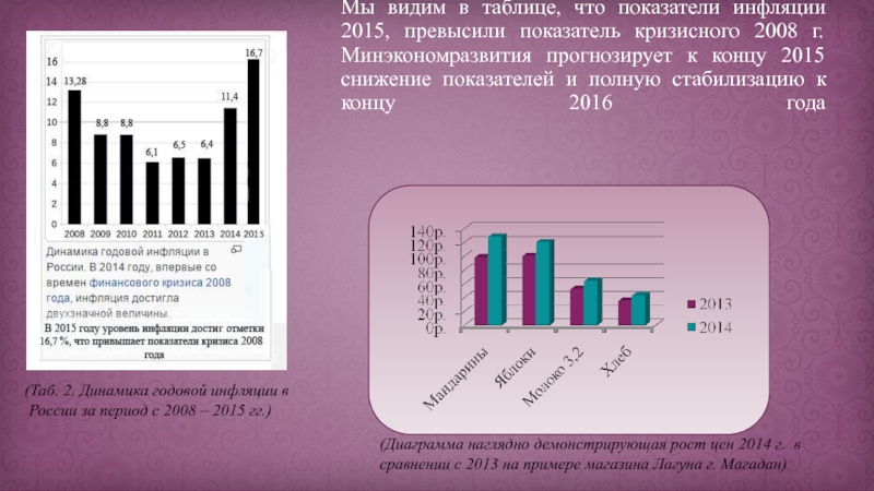(Диаграмма наглядно демонстрирующая рост цен 2014 г. в сравнении с 2013 на примере магазина Лагуна г. Магадан)