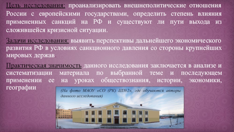 (На фото МАОУ «СО (РК) Ш№2», где обучаются авторы данного исследования)