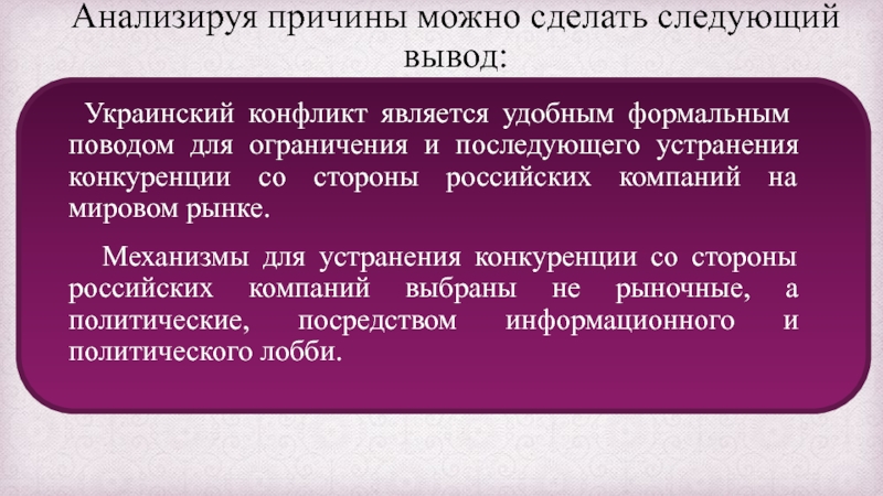 Украинский конфликт – удобный формальный повод для устранения конкуренции российских компаний на мировом рынке