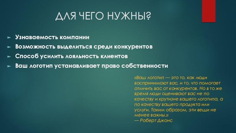 «Ваш логотип — это то, как люди воспринимают вас, и то, что помогает отличить вас от конкурентов. Но в то же время люди оценивают вас не по качеству и крутизне вашего логотипа, а по качеству вашего продукта или услуги. Таким образом, эти вещи не менее важны.»
