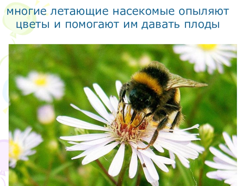 многие летающие насекомые опыляют цветы и помогают им давать плоды