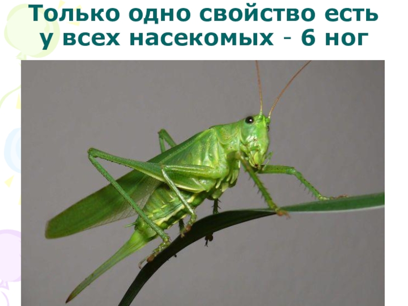 Слайд 25Только одно свойство есть у всех насекомых - 6 ног