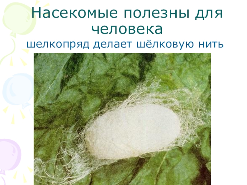 Насекомые полезны для человека  шелкопряд делает шёлковую нить