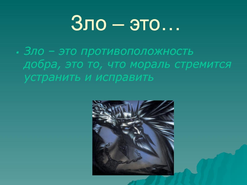 Зло – это…Зло – это противоположность добра, это то, что мораль стремится устранить и исправить
