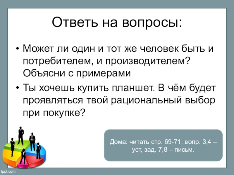 Дома: читать стр. 69-71, вопр. 3,4 – уст, зад. 7,8 – письм.